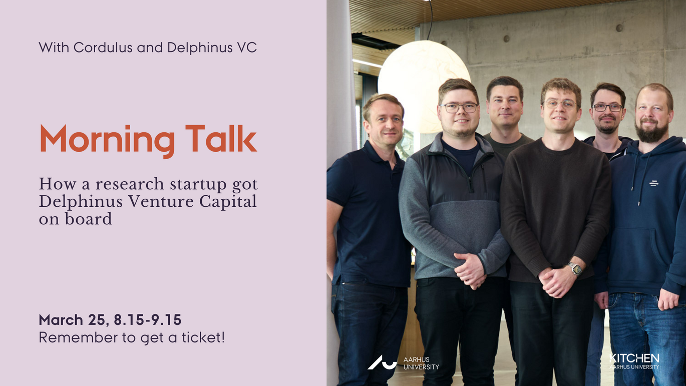 We are joined by Mathias Brink Lorenz from Delphinus Venture Capital, who will share insights into the role of a venture capital partner and how VCs support emerging ventures. He will be joined by John Smedegaard from Cordulus, an Aarhus University spinout developing AI-driven hyperlocal weather intelligence to support more efficient and sustainable agriculture.